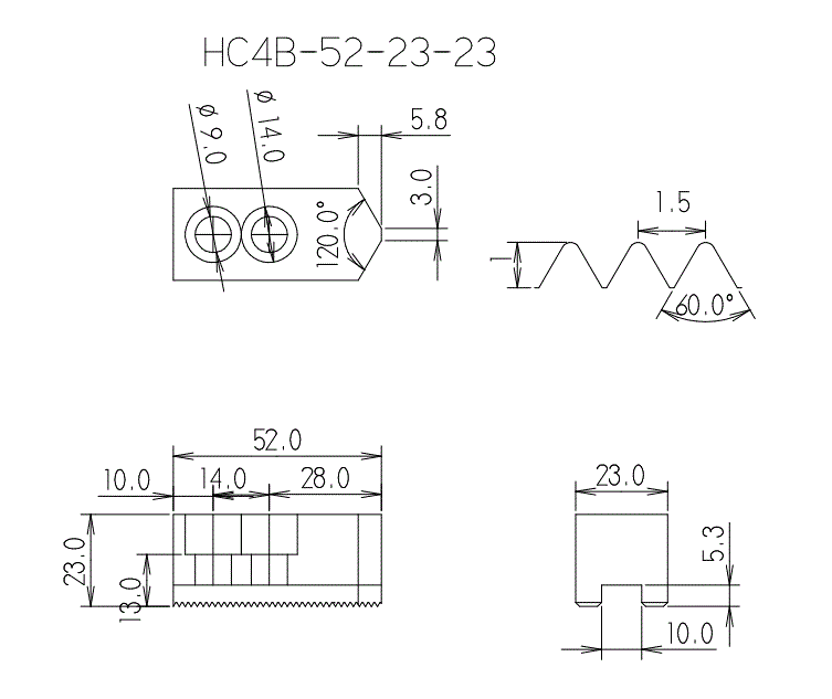 梅華●4"-52-23-23-B120度油壓生爪-尺寸圖