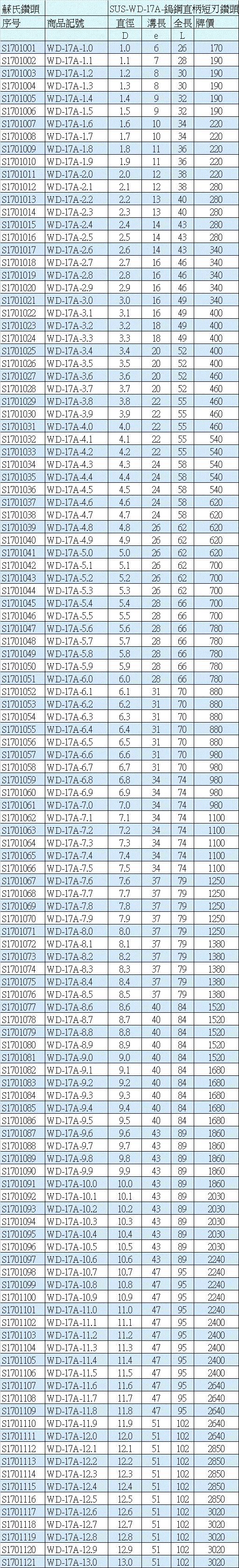 台灣蘇氏SUS-WD-17A(鎢鋼直柄短鑽頭 DIN 1897)