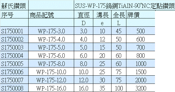 台灣蘇氏SUS-WP-175(TIAIN鎢鋼90度NC定點鑽頭)