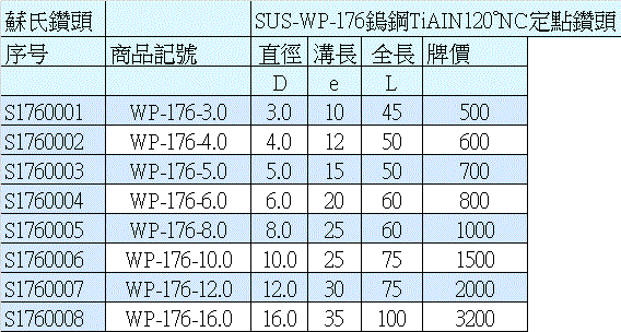 台灣蘇氏SUS-WP-176(TIAIN鎢鋼120度NC定點鑽頭)